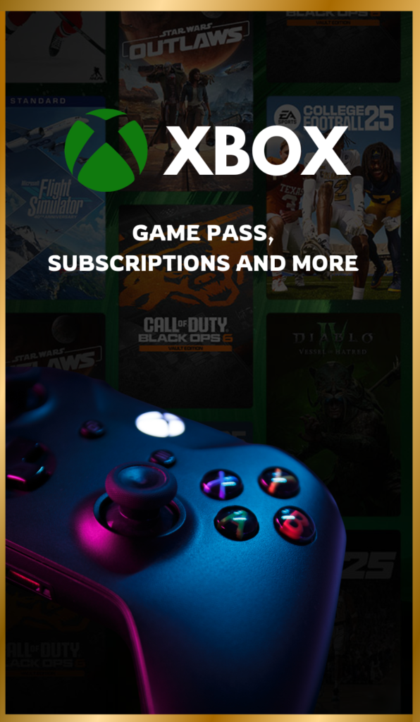 Xbox, and Switch games, premium software, and subscriptions